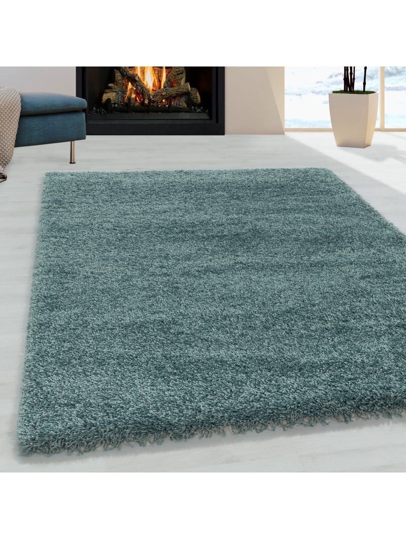 Wohnzimmerteppich im Shaggy-Design, weicher Flor, einfarbig, Aqua