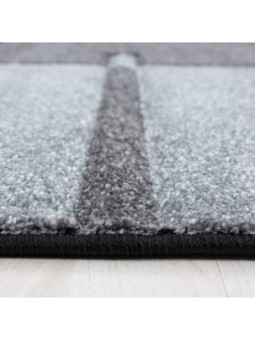 Kurzflorteppich, kariert, grau, Wohnzimmerteppich, Jute-Rückseite, 100 % PP. Friese (Hundeschnitzerei), Florhöhe: 13 mm, 246.000 Punkte, 2800 g (±5 %)/m², Jute-Rückseite