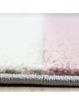 Kurzflorteppich, kariert, rosa, Wohnzimmerteppich, Jute-Rückseite, 100 % PP. Friese (Hundeschnitzerei), Florhöhe: 13 mm, 246.000 Stiche, 2800 g (±5 %)/m², Jute-Rückseite