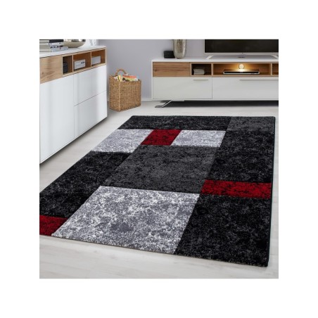 Kurzflorteppich, kariert, rot, Wohnzimmerteppich, Jute-Rückseite, 100 % PP. Friese (Hundeschnitzerei), Florhöhe: 13 mm, 246.000 Stiche, 2800 g/m², Jute-Rückseite