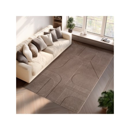 Boho-Teppich im skandinavischen Stil, einfarbig beige, weich, pflegeleicht, waschbar, 3D-Effekt, geeignet für Wohn- und Schlafzimmer, 100 % Mikrofaser, Florhöhe: 12 mm, 1150 g (±5 %)/m², Baumwollrücken