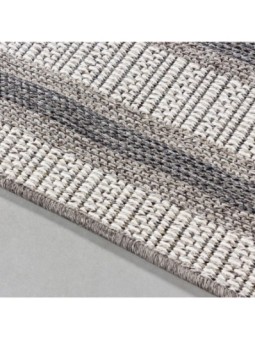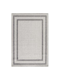 Terrassenteppich aus Sisal für den Außenbereich mit Flechtoptik, beige-cremefarbener Teppich mit doppeltem Bordürenmuster