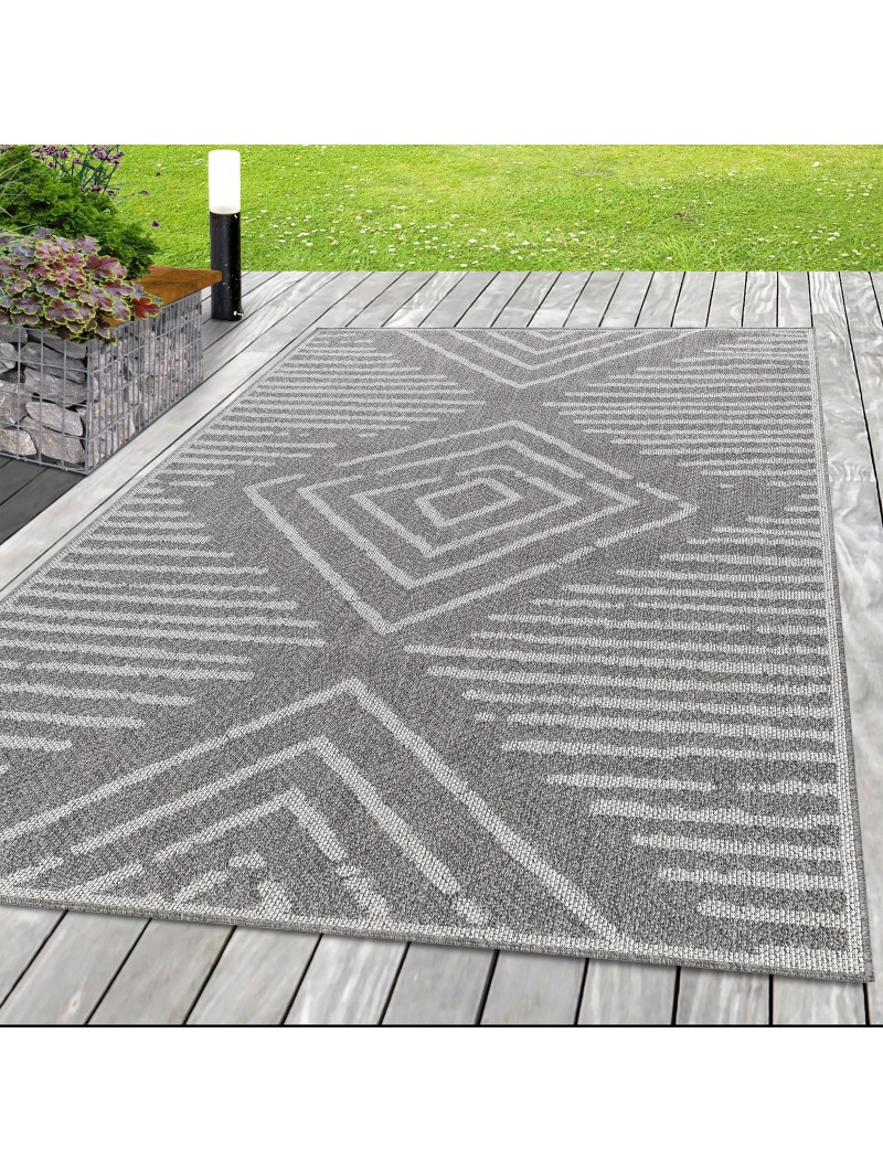 Grauer Sisalteppich mit gestreiftem Karomuster für den Innen- und Außenbereich, Terrasse, Balkon, Küche, Wohnzimmer