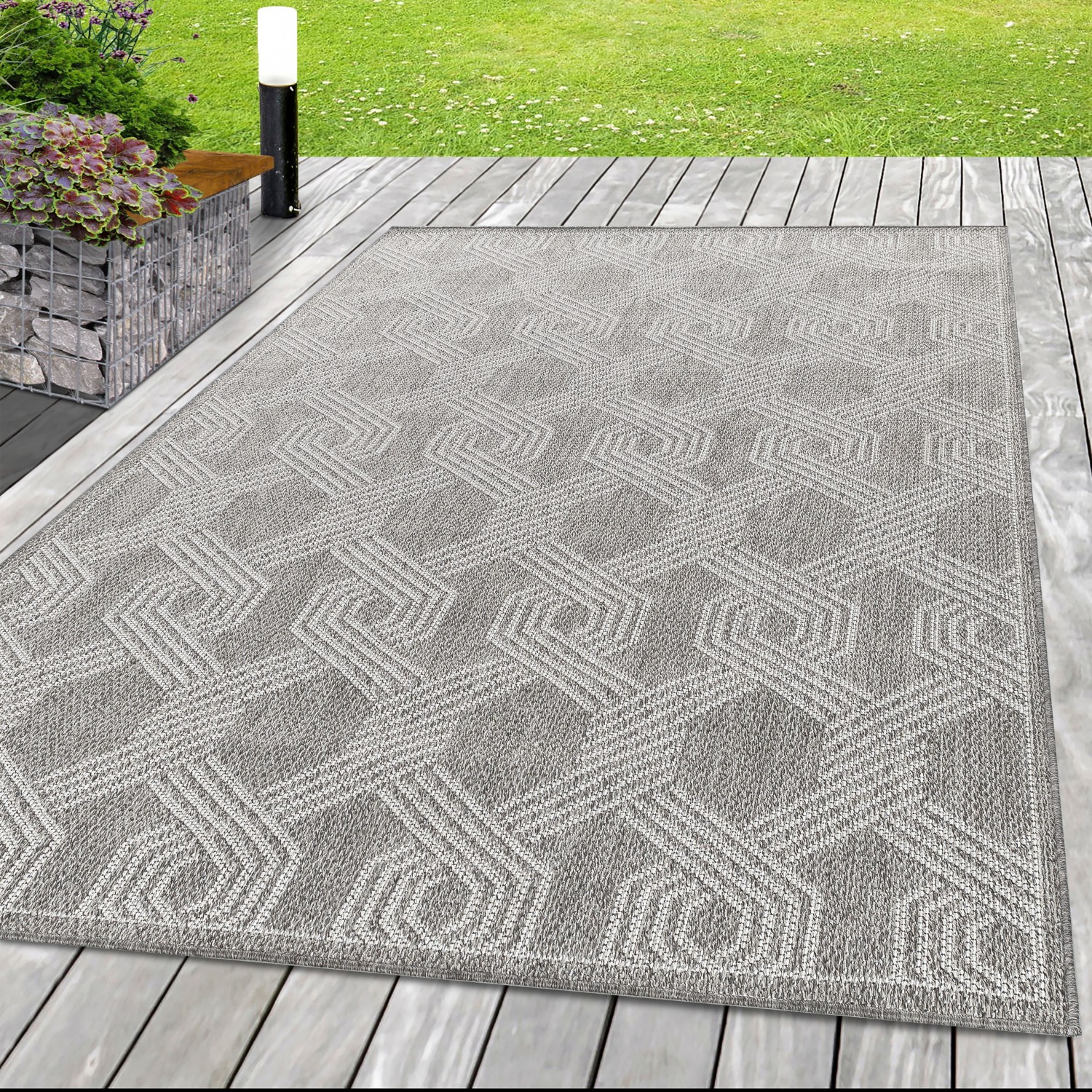 Outdoor-Teppich, geometrisches Muster, graue Farbe, Teppich für Terrasse/Balkon/Küche
