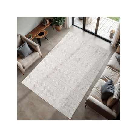 Kurzflorteppich, 3D-Design, cremefarben, Wohnzimmerteppich, Rückseite aus fibrilliertem Garn, 100 % PP-Heatfixierung, Florhöhe: 4 mm, 1300 g (±5 %) m², Rückseite aus fibrilliertem PP-Garn
