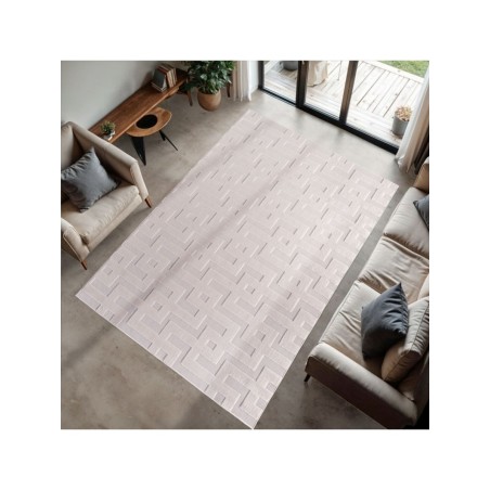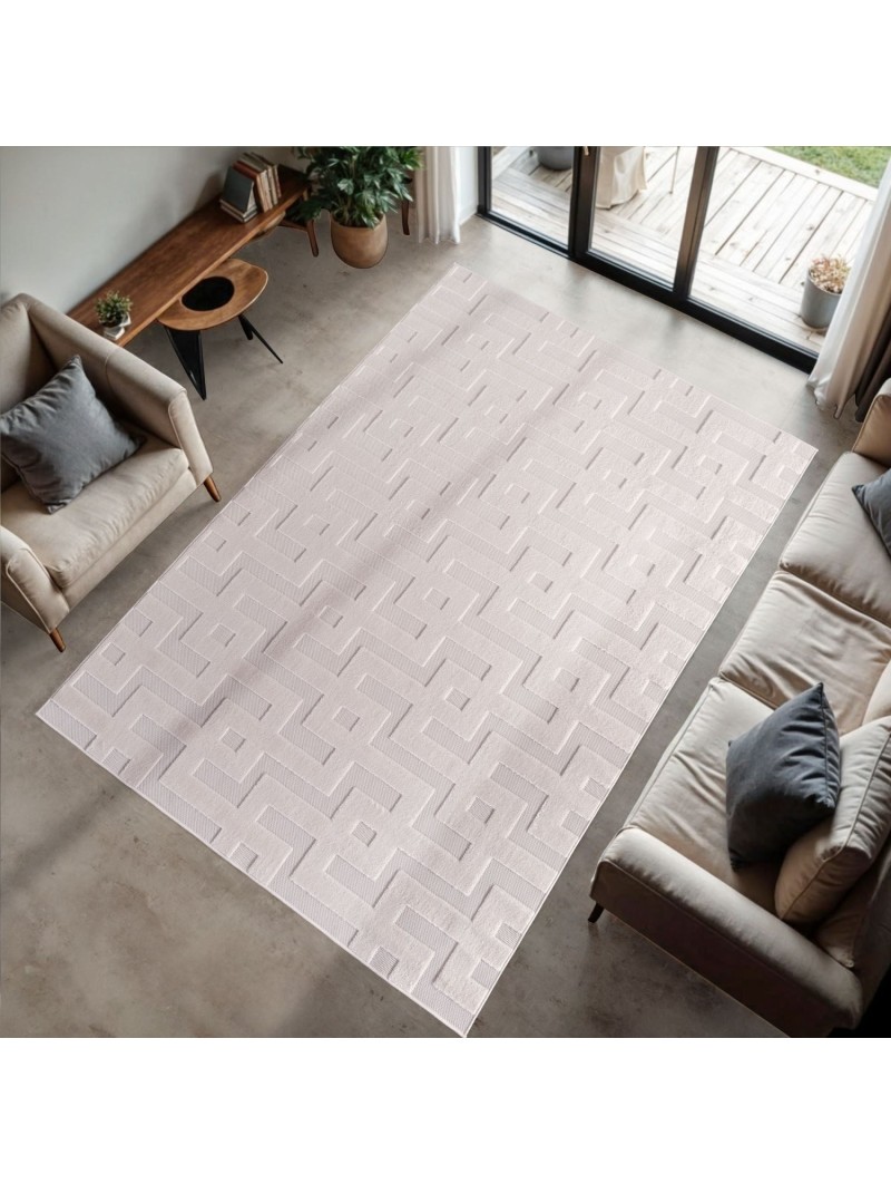 Kurzflorteppich, 3D-Design, cremefarben, Wohnzimmerteppich, Rückseite aus fibrilliertem Garn, 100 % PP-Heatfixierung, Florhöhe: 4 mm, 1300 g (±5 %) m², Rückseite aus fibrilliertem PP-Garn