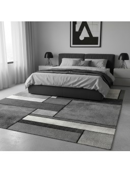Dieser moderne Teppich besticht durch sein strukturiertes, geometrisches Design aus ineinandergreifenden Rechtecken, das eine harmonische und zeitgemäße Optik erzeugt. Die unterschiedlichen Farbtöne verleihen ihm Tiefe und eine elegante optische Balance – ideal für moderne oder minimalistische Interieurs. Sein lineares, architektonisches Muster fügt sich perfekt in Wohnzimmer, Schlafzimmer oder Büro ein und setzt einen grafischen und raffinierten Akzent.