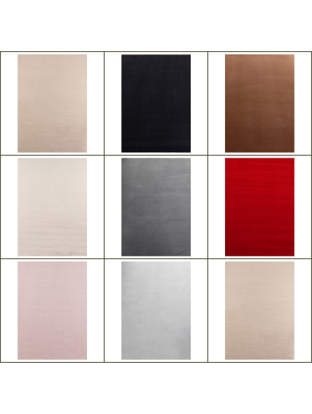 Dank seiner kurzen Florhöhe von ca. 7 mm ist er pflegeleicht und ideal für stark frequentierte Bereiche. Die weiche Oberfläche sorgt für ein angenehmes Gefühl, während die edle Verarbeitung dem Teppich ein modernes und elegantes Aussehen verleiht.
