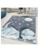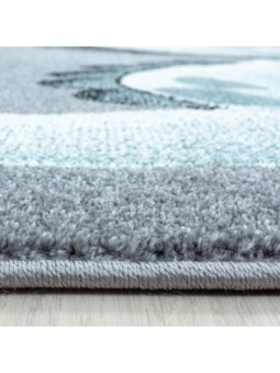 Children's rug, dinosaur pattern, blue, nursery rug, jute backing, 100% PP Friese, Pile height: 10 mm, 240,000 stitches, 2200 g/m², Jute backing