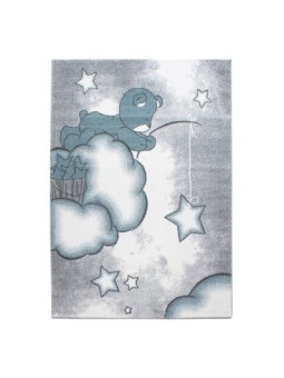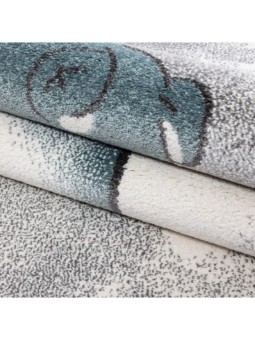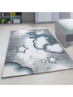 Children's rug, Bear pattern, Blue, Nursery rug, Jute backing, 100% PP Friese, Pile height: 11 mm, 211,000 stitches, 2500 g (±5%)m², Jute backing