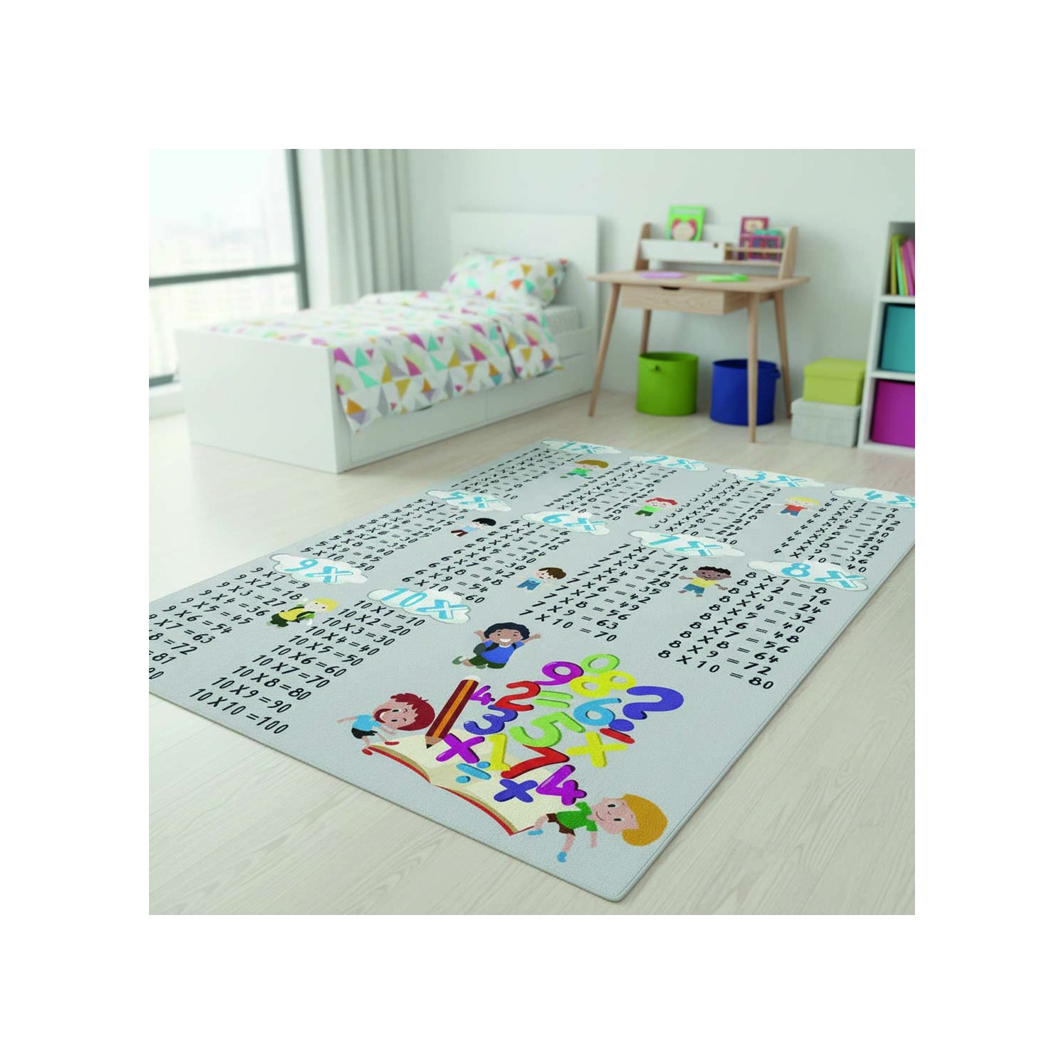 This colorful educational mat helps children learn their multiplication tables from 1 to 10 in a fun and engaging way. With its playful characters and clearly visible numbers, it makes math more appealing. Its non-slip base ensures maximum safety during playtime. Easy to clean and comfortable underfoot, it's ideal for a child's bedroom, playroom, or preschool area.
