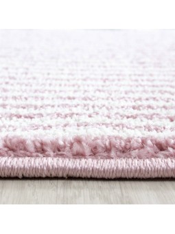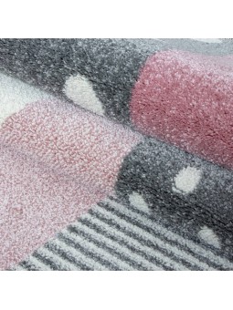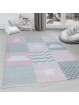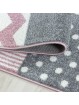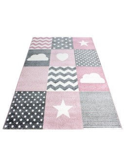 Checkered rug for children's room with cloud and stars pattern, grey, pink, and white