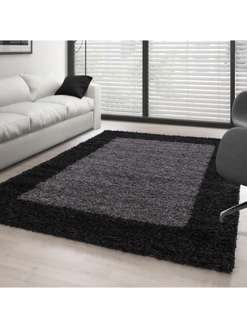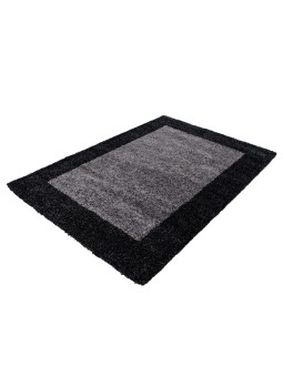 Soft shaggy rug with a decorative border in an elegant anthracite tone. Its long fibers offer warm comfort for everyday use, ideal for the living room or bedroom in a modern interior.