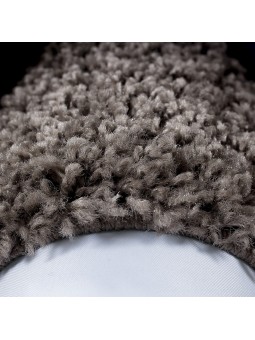 Soft shaggy rug with a decorative taupe border. Its long pile texture offers comfort and warmth, ideal for a living room or bedroom in a modern and cozy style.