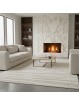 This modern cream-colored rug features a horizontal linear pattern composed of irregular, raised layers, evoking a naturally inspired, stratified texture. Subtle variations in height create elegant visual depth while maintaining a soft, light ambiance. Its clean design adds rhythm to the space without overwhelming it, making it ideal for a living room, bedroom, or contemporary living area. The precise weave ensures good stability and lasting comfort for everyday use.
