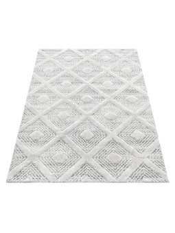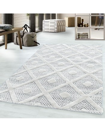 Living Room Rug, Designer Rug with Low Pile, Loop Yarn, Diamond Pattern, Square Grid