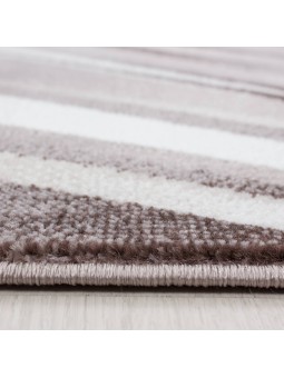Modern rug with abstract pattern of flowing lines in shades of brown and beige, inspiring movement and visual softness in a contemporary interior. Machine woven – Material: 100% PP Heatset – Pile height: 9 mm – Weight: 1.9 kg/m² . Soft surface, good durability and easy maintenance. Suitable for underfloor heating . Certified OEKO-TEX® Standard 100 : free from harmful substances, suitable for family living spaces. Recommended rooms: Living room, Bedroom, Dining room, Hallway, Office. Note: Slight color variations may occur depending on the screen and lighting.