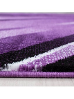 Modern rug with an abstract pattern of flowing waves in shades of purple, plum and black, bringing dynamism and visual depth to a contemporary interior. Machine woven – Material: 100% PP Heatset – Pile height: 9 mm – Weight: 1.9 kg/m² . Soft, lightweight and durable surface, easy to maintain, compatible with underfloor heating . Certified OEKO-TEX® Standard 100 , free from harmful substances and safe for everyday use. Recommended rooms: Living room, Bedroom, Dining room, Hallway, Office. Color variations may occur depending on the screen and lighting.