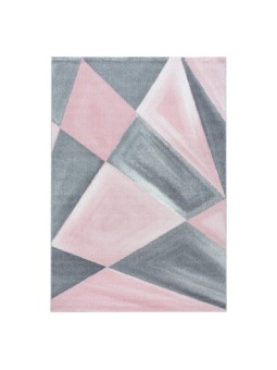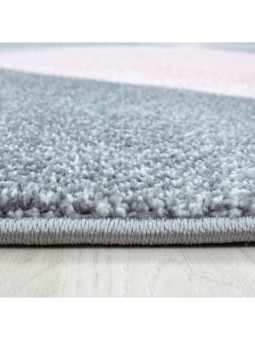 Short pile rug, geometric design, pink, living room rug, jute backing, 100% PP frieze, pile height: 10 mm, 240,000 stitches, 2200 g (±5%) m², jute backing
