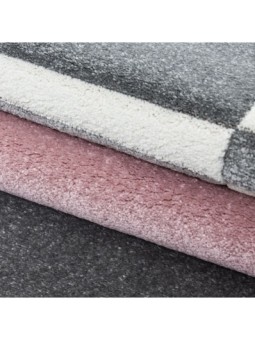 Short pile rug, checkered pattern, pink, living room rug, jute backing, 100% PP. Friese (Hund Carved), pile height: 13 mm, 246,000 stitches, 2800 g (±5%)m², jute backing