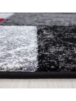 Short pile rug, checkered pattern, red, living room rug, jute backing, 100% PP. Friese (Hund Carved), pile height: 13 mm, 246,000 stitches, 2800 g/m², jute backing