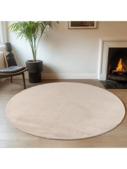 Cream Washable Rug, Short Pile, Non-Slip and Soft, Modern Solid Color Design for Living Room, Bedroom, Kitchen & Children's Room, 100% Polyester, Pile Height: 11 mm, 1200 g/m², Felt/Non-Slip Backing