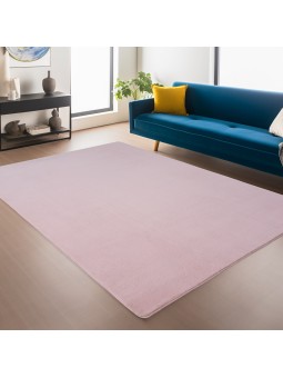 Round Pink Washable Rug, Short Pile, Round, Non-Slip and Soft, Modern Solid Color Design for Living Room, Bedroom, Kitchen & Children's Room. 100% Polyester, Pile Height: 11 mm, 1200 g/m², Felt/Non-Slip Backing