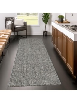 Modern looped rug in dark gray, natural woven look, suitable for living room, bedroom, or office
