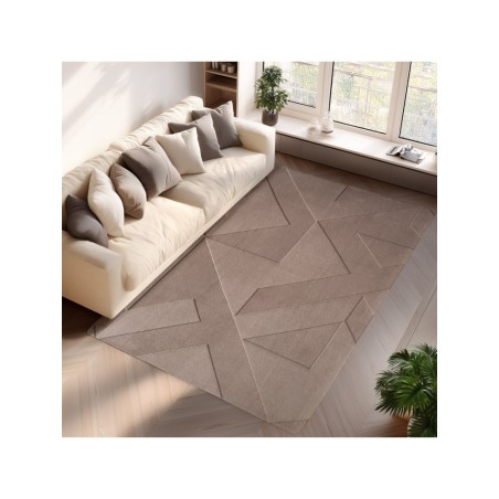 Bohemian rug with geometric patterns, solid beige color, soft, easy-care, washable, 3D effect for living room and bedroom, 100% microfiber, pile height: 12 mm, 1150 g (±5%)m², cotton backing