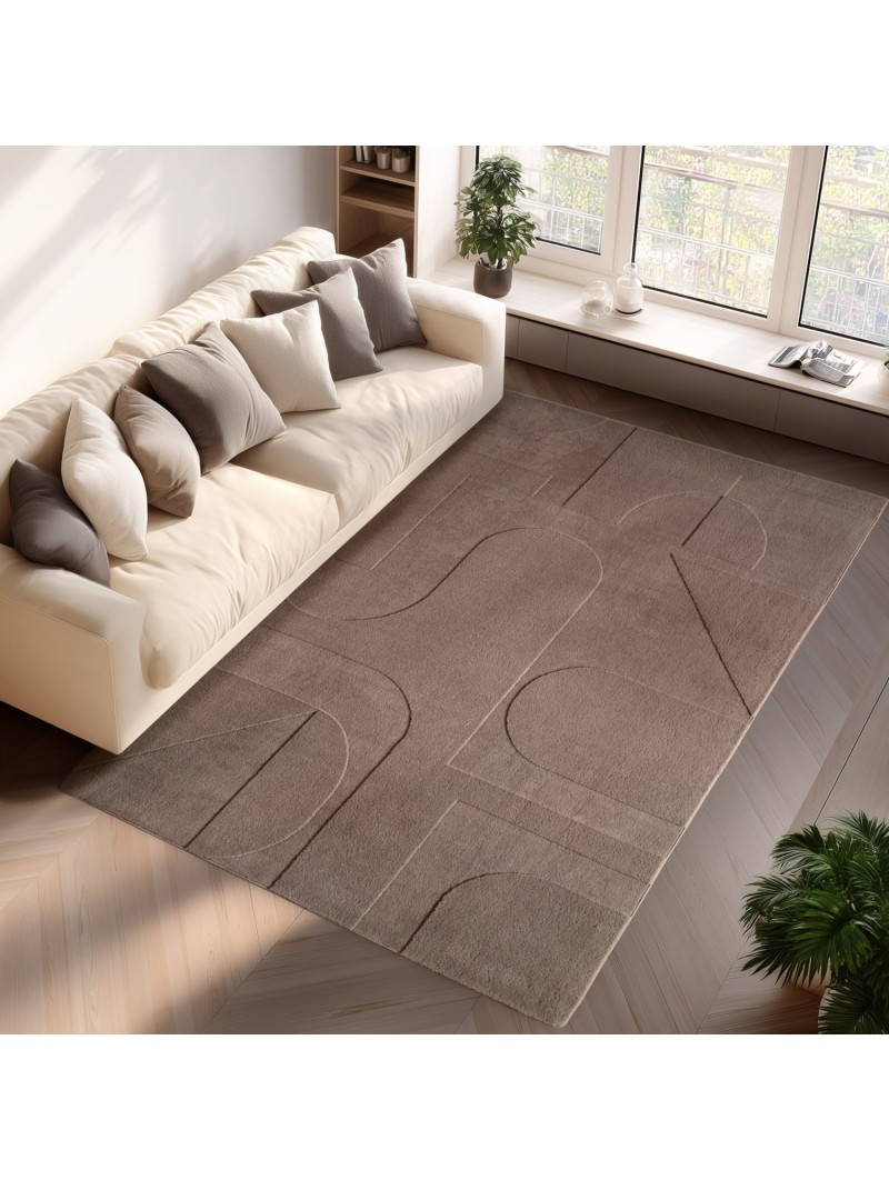 Boho Scandinavian rug, solid beige color, soft, easy-care, washable, 3D effect, rug for living room & bedroom, 100% microfiber, pile height: 12 mm, 1150 g (±5%)m², cotton backing