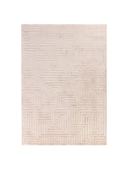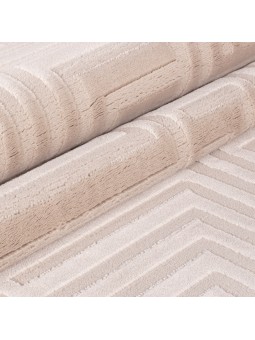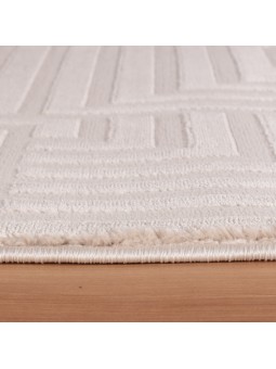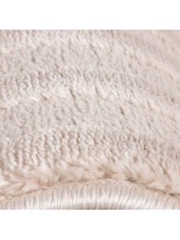 Living room rug with raised geometric patterns, Scandinavian bohemian style, soft, beige, jute backing.
