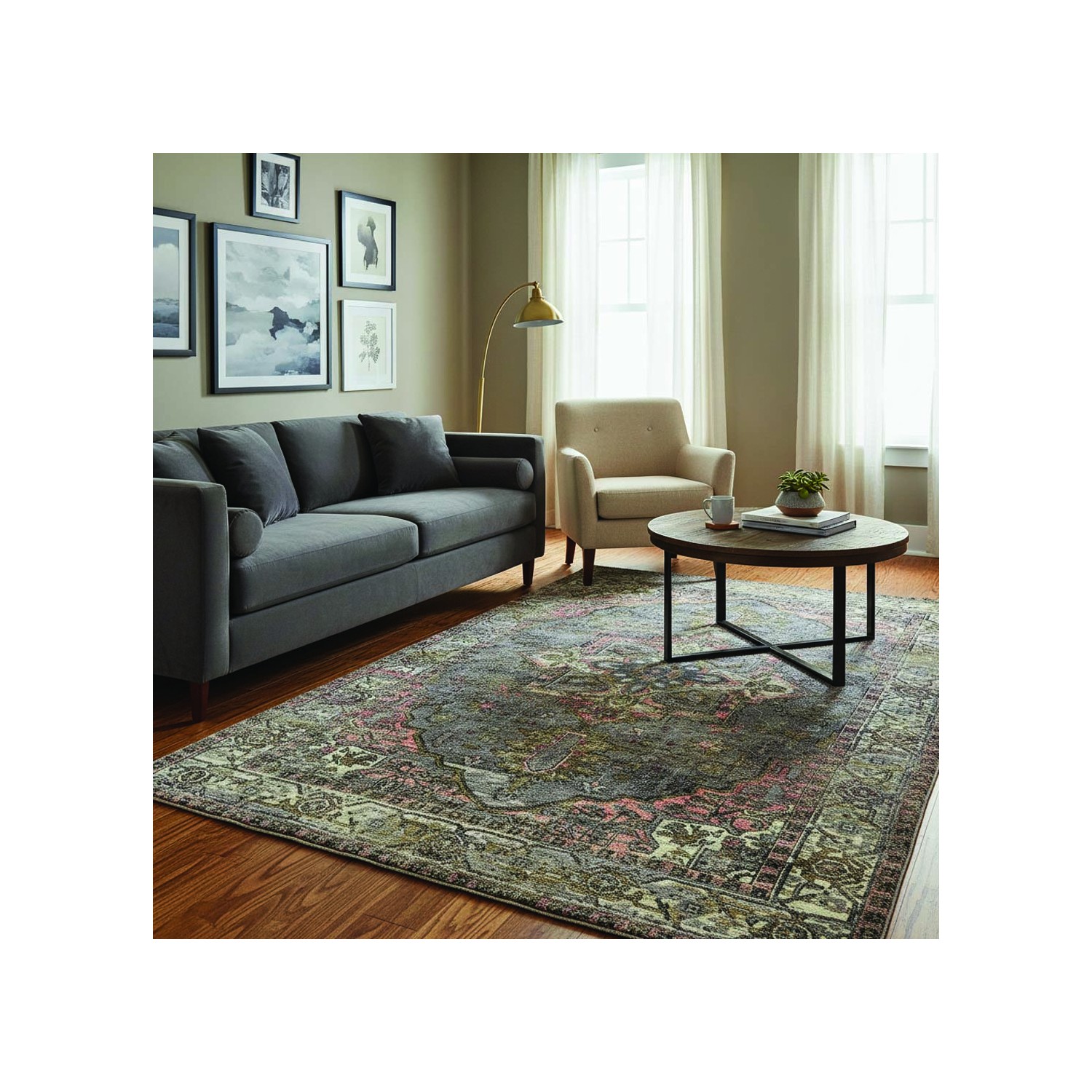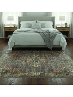 This vintage rug with its oriental motifs and multicolored tones brings a warm and elegant ambiance to your home. Its soft chenille and cotton texture provides comfortable everyday use. Thanks to the high-quality digital printing, the details remain crisp and vibrant over time. Washable and featuring a non-slip backing, it is suitable for modern or classic living rooms, bedrooms, and other living spaces. Compatible with underfloor heating.