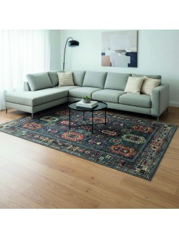 This rug, with its reimagined kilim design, stands out with its multicolored oriental motifs on a modern anthracite base. Its chenille and cotton blend provides softness, comfort, and everyday durability. Thanks to high-definition digital printing, the details remain crisp and vibrant over time. Featuring a non-slip backing and compatibility with underfloor heating, it's perfect for the living room, bedroom, or hallway. A touch of character for a modern and inviting décor.
