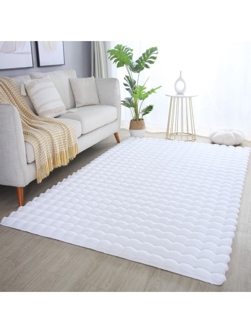 Long pile rug, non-slip, solid color, white, soft and washable, living room rug, cotton backing, 100% Polyester, Pile height: 25 mm, 1600 g (±5%)m², Cotton backing