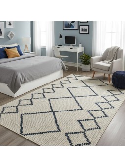 This modern Scandinavian-style rug features an elegant geometric diamond pattern in blue on a cream background. Thanks to its digital printing technology , the colors remain vibrant over time. Its soft feel, easy care, and non-slip backing make it an ideal choice for living rooms, children's bedrooms, entryways, or offices. A minimalist and warm touch for your home.