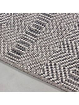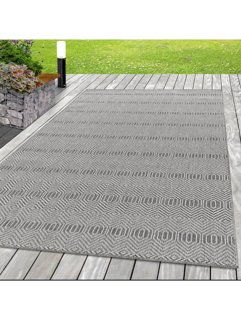 Indoor and outdoor patio rug, sisal-look grey rug with hologram pattern