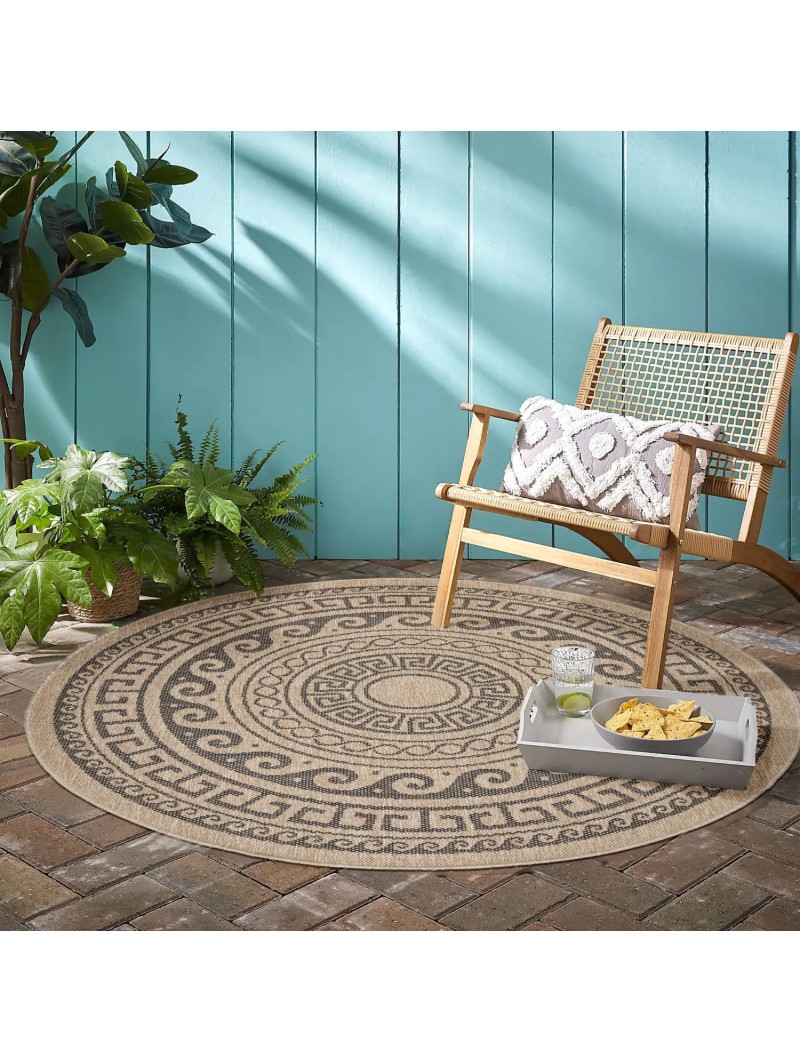 Outdoor rug, Vintage design, Black, Rug for Terrace/Balcony/Kitchen, Polypropylene backing, 100% PP. Heatset Fries, Pile height: 3 mm, 76,800 points, 1600 g (±5%)m², Polypropylene backing