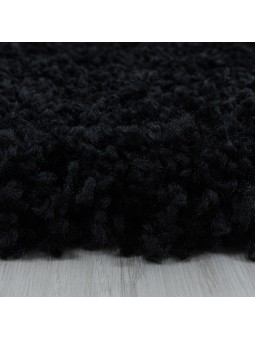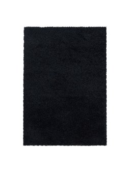 Alfombra de salón con diseño peludo, pelo suave, color negro monocromático