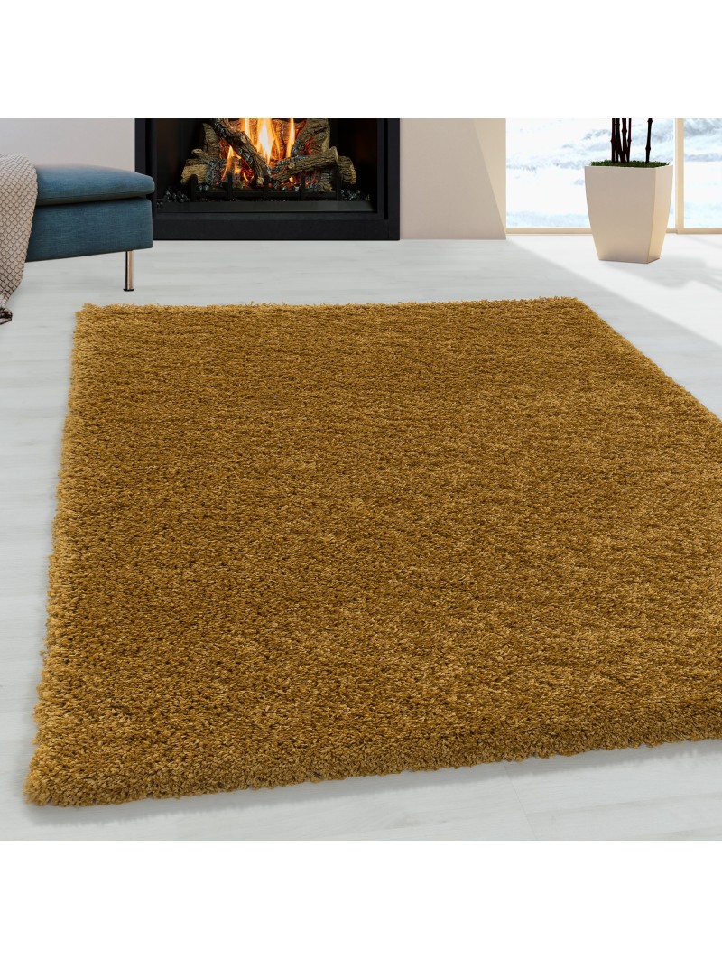 Alfombra Shaggy para sala de estar, pelo suave, dorado monocromático