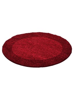 Alfombra roja de pelo largo con borde decorativo a juego. Su textura de pelo largo proporciona una sensación suave y cálida, ideal para crear un ambiente acogedor en el salón o el dormitorio.
