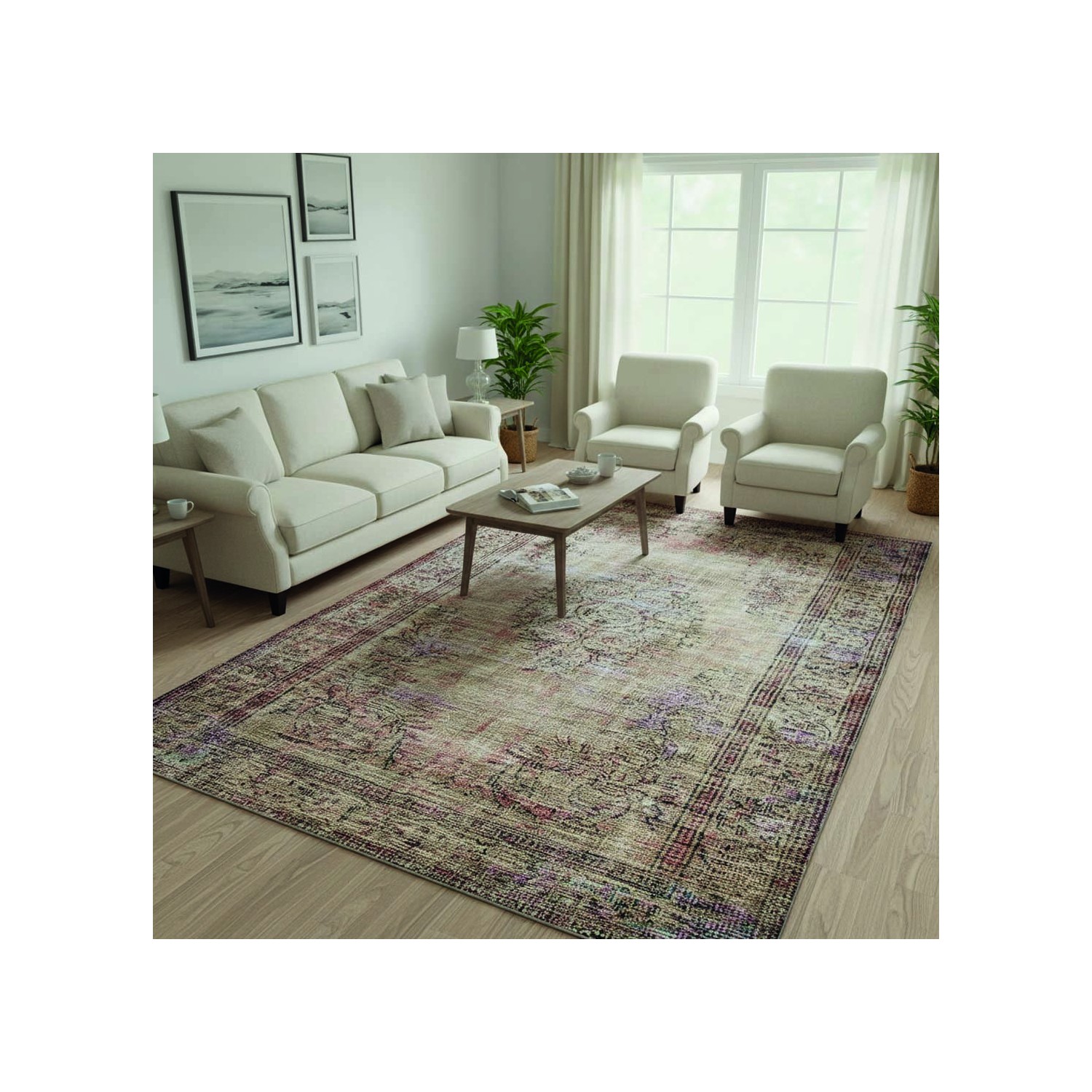 Esta alfombra vintage en tonos beige con sutiles estampados desteñidos aporta encanto y autenticidad a tus espacios. Su textura suave y cómoda crea un ambiente cálido en el salón, el dormitorio o la oficina. Gracias a su composición de chenilla y algodón y a la tecnología de impresión digital, conserva sus colores y elegancia con el paso del tiempo. Su base antideslizante garantiza un agarre perfecto en el suelo y su diseño lavable facilita el cuidado diario. Ideal para interiores modernos, retro o bohemios chic.