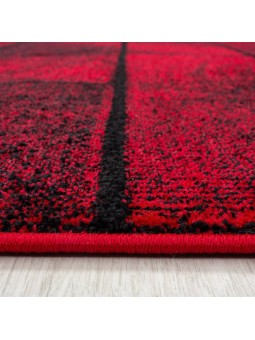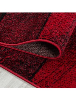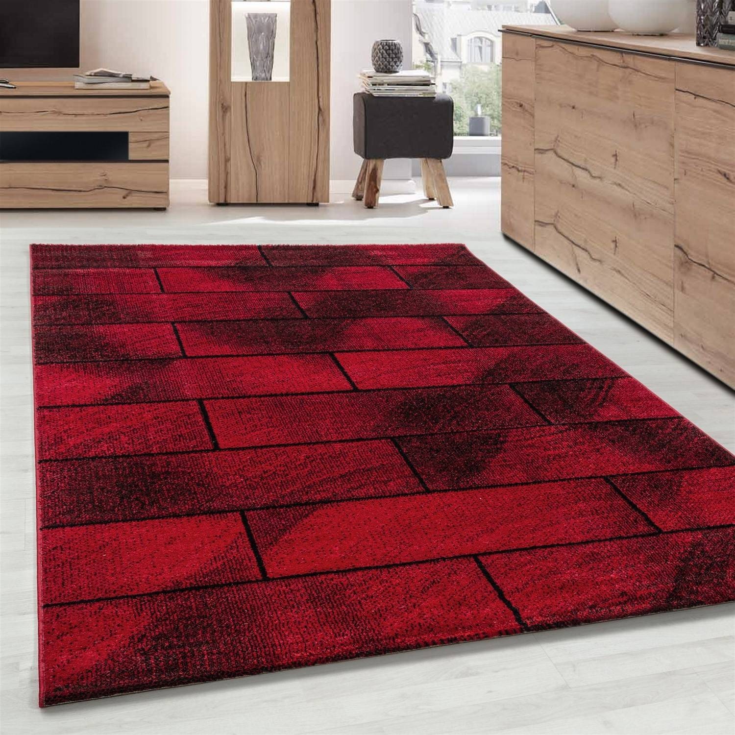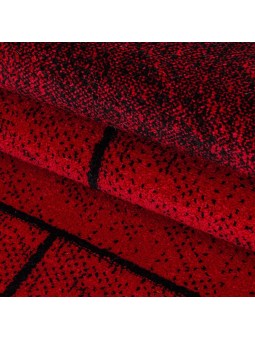 Alfombra de diseño moderna, pelo corto, pared de piedra, aspecto piedra, pared negra y roja