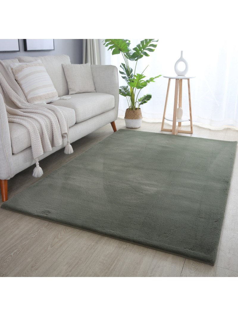 Alfombra de pelo largo, color verde liso, alfombra para salón, reverso de algodón, 100 % poliéster, altura del pelo: 20 mm, 1600 g (±5 %) m², reverso de algodón