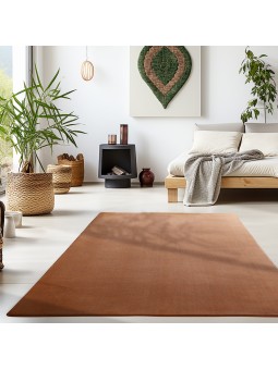 Alfombra de pelo corto, color marrón liso, para salón, base antideslizante, 100 % microfibra, altura del pelo: 7 mm, 1300 g (±5 %) m², base de fieltro/antideslizante.