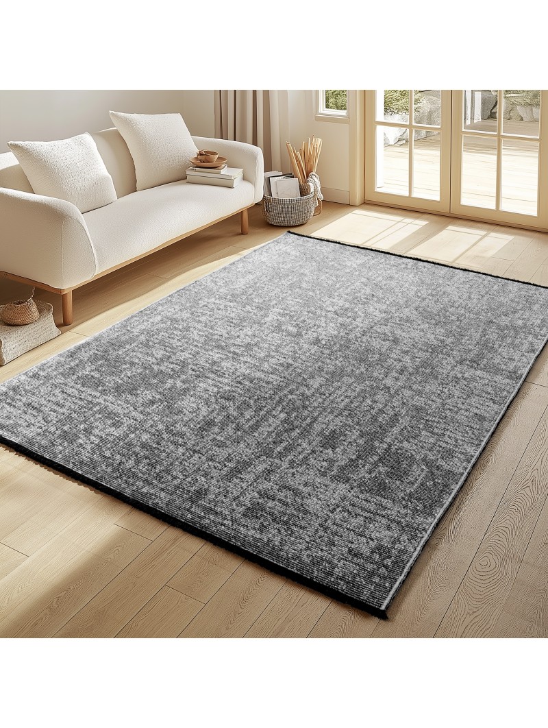 Alfombra de chenilla de algodón gris, lavable, estilo bohemio, kilim vintage, pelo corto, antideslizante y suave, color jaspeado único, para salón, dormitorio, oficina y cocina, 16 % chenilla, 84 % algodón, altura del pelo: 7 mm, 1800 g (±5 %) m²