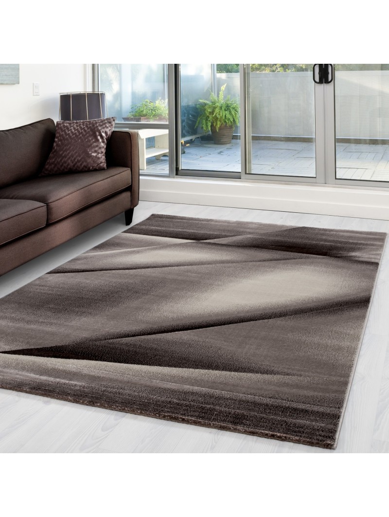 Una alfombra moderna con un estampado abstracto inspirado en drapeados fluidos en tonos beige y marrón. Su efecto satinado y degradado crea volumen y una atmósfera cálida, perfecta para un interior contemporáneo. Terciopelo suave, duradero y de fácil cuidado para la sala de estar, el dormitorio o la oficina.