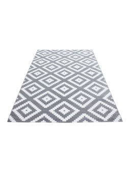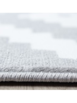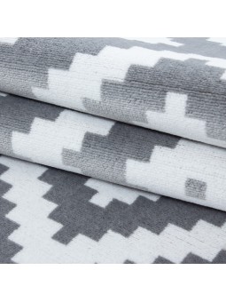 Alfombra de salón de diseño moderno, elegante, de pelo corto, en gris y blanco.