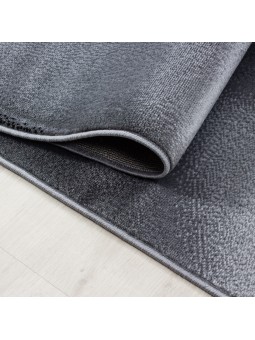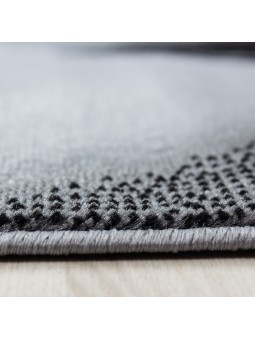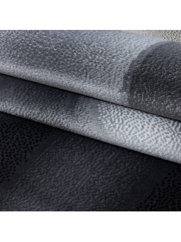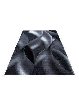 Alfombra de salón de diseño moderno con estampado de ondas de pelo corto, en negro y gris.