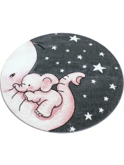 Alfombra infantil con elefante y estrellas, gris-blanco-rosa