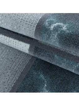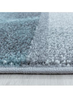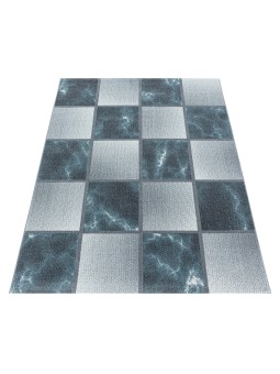 Tapis de salon à poil ras Marbré Motif de carré Poil souple Bleu